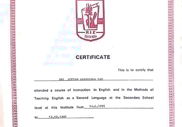 Awarded by the Regional Institute of English South India for outstanding contributions to English language education and teacher training, recognizing a commitment to enhancing educational practices and student outcomes.